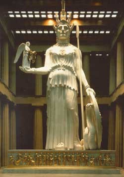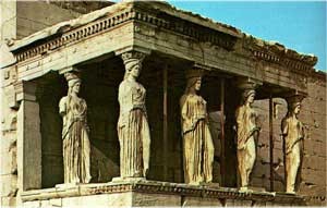 Các nghệ sĩ Hy Lạp đã dành tất cả tâm huyết tôn thờ Nữ Thần Athèna bằng những kiệt tác kiến trúc và điêu khắc. Đền Parthénon được liệt vào danh sách bảy kỳ quan của Thế giới Cổ đại. Tác giả phần kiến trúc là các kiến trúc sư Ichtinos và Calicrates, đã thiết kế và chỉ đạo xây dựng ngôi đền từ năm 447 đến năm 438 Tr.C.N. Phần điêu khắc được nghệ sĩ bậc thầy Phidias hoàn thành vào năm 431 Tr.C.N. Ngôi đền được làm bằng đá cẩm thạch theo hệ thống kiểu cột Đôrich mạnh mẽ và trang nghiêm, có tỷ lệ đẹp đẽ nhất đã trở thành chuẩn mực của kiến trúc cổ đỉển phương Tây. Đền Erechtheion cũng là một kiệt tác của kiến trúc Hy Lạp nhưng theo hệ thống cột Iônic, tác giả là kiến trúc sư Phiôclex đã đưa ra một dạng cột độc đáo là cột hình thiếu nữ được gọi là Caratít. Tượng sáu cô gái đẹp duyên dáng với những nếp áo mềm mại đứng thay vị trí các cột đá làm nhiệm vụ đỡ các dầm mái. Dạng cột Cariatít từ đây được phổ biến trong kiến trúc cổ điển phương Tây!